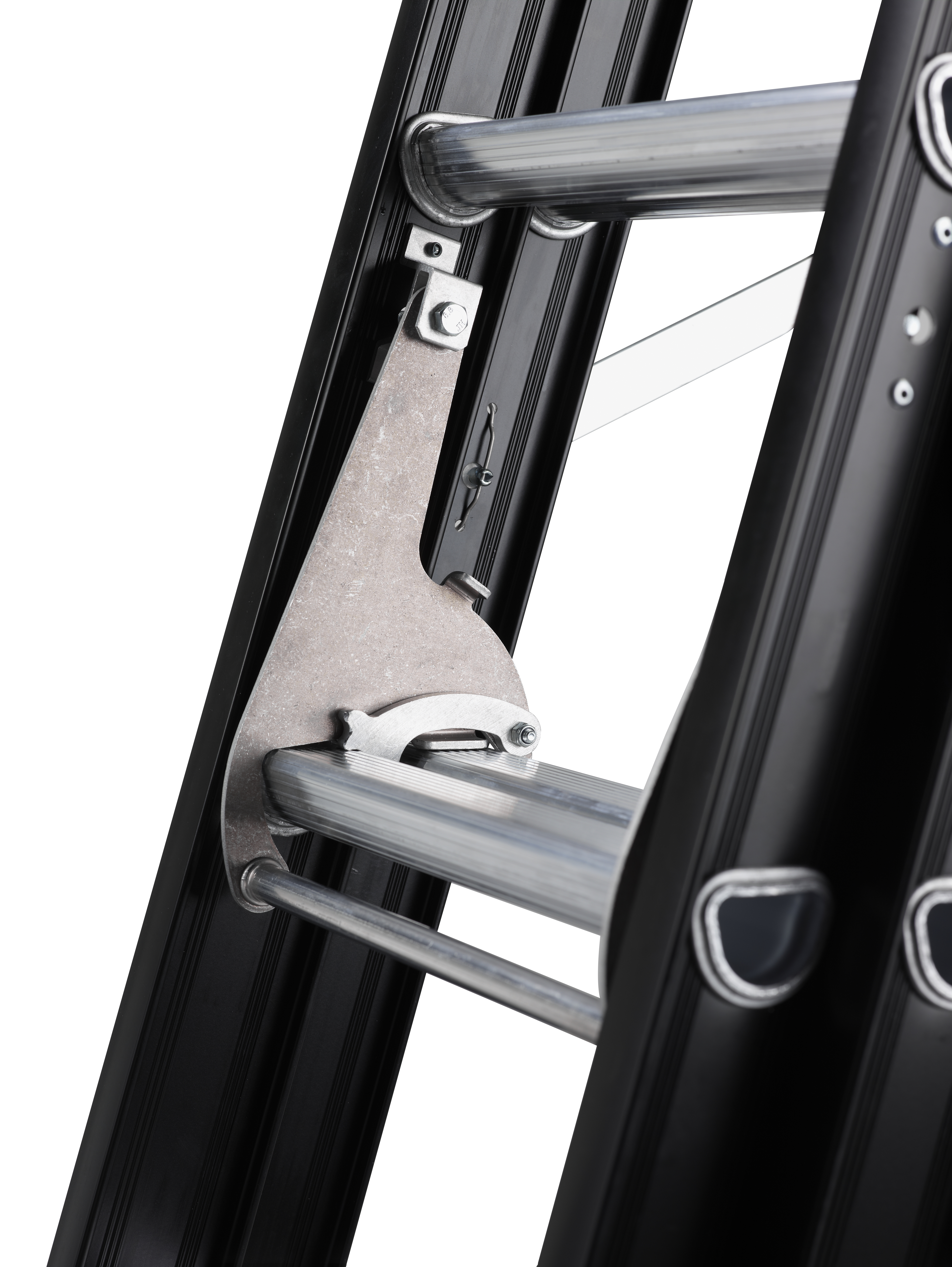 De unieke D-sport zit door de speciale vorm stevig op zijn plek. Bovendien geeft het brede oppervlak je meer stacomfort en met de stabiliteitsbalk sta je extra stabiel. De ladder is eenvoudig in en uit te schuiven door de automatisch vergrendelende schommelhaak en de toprollen aan de uiteinden. De kenmerkende zwarte coating is naast mooi ook nog eens vuilafstotend.