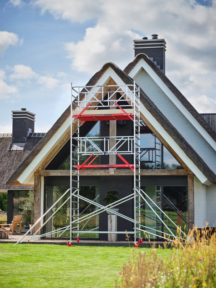 De RS TOWER 42 is een complete rolsteiger. Perfect voor de professional. De geknepen klauw-schoorbuis verbindingen maken de RS TOWER 42 sterk. De steiger brengt je tot een maximale werkhoogte van 10.20 meter buiten en 14.20 meter binnen.