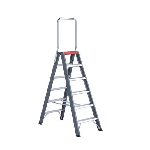 De Falco is gemaakt voor intensief gebruik. Dubbel oploopbaar dus aan beide zijden te gebruiken. De robuust vormgegeven trap is ideaal voor elke professionele klus. Het unieke scharniersysteem van het bordes maakt de trap opvallend veilig in gebruik.