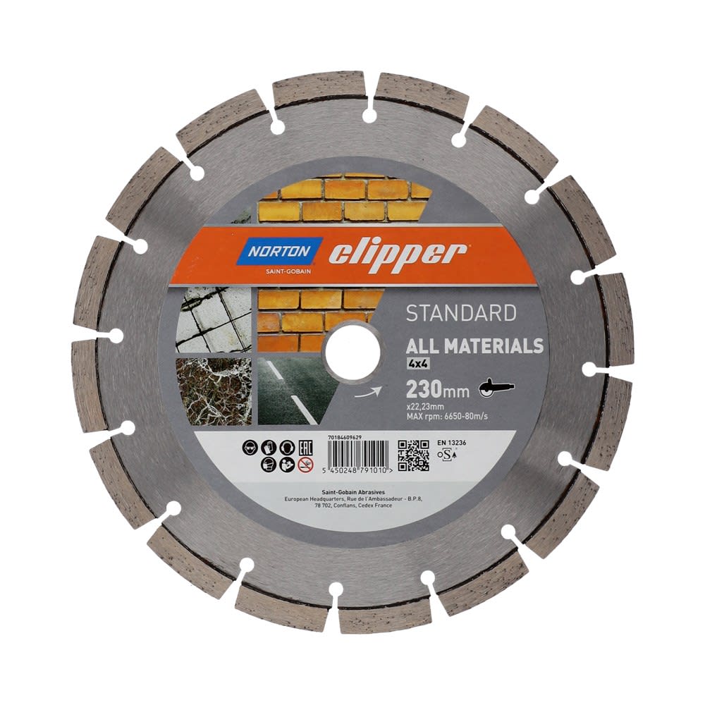HomeVerbruiksartikelenZaagbladenDiamantzaagbladenClipper Diamantzaagblad Standard All Materials 22.23x230mm 1st