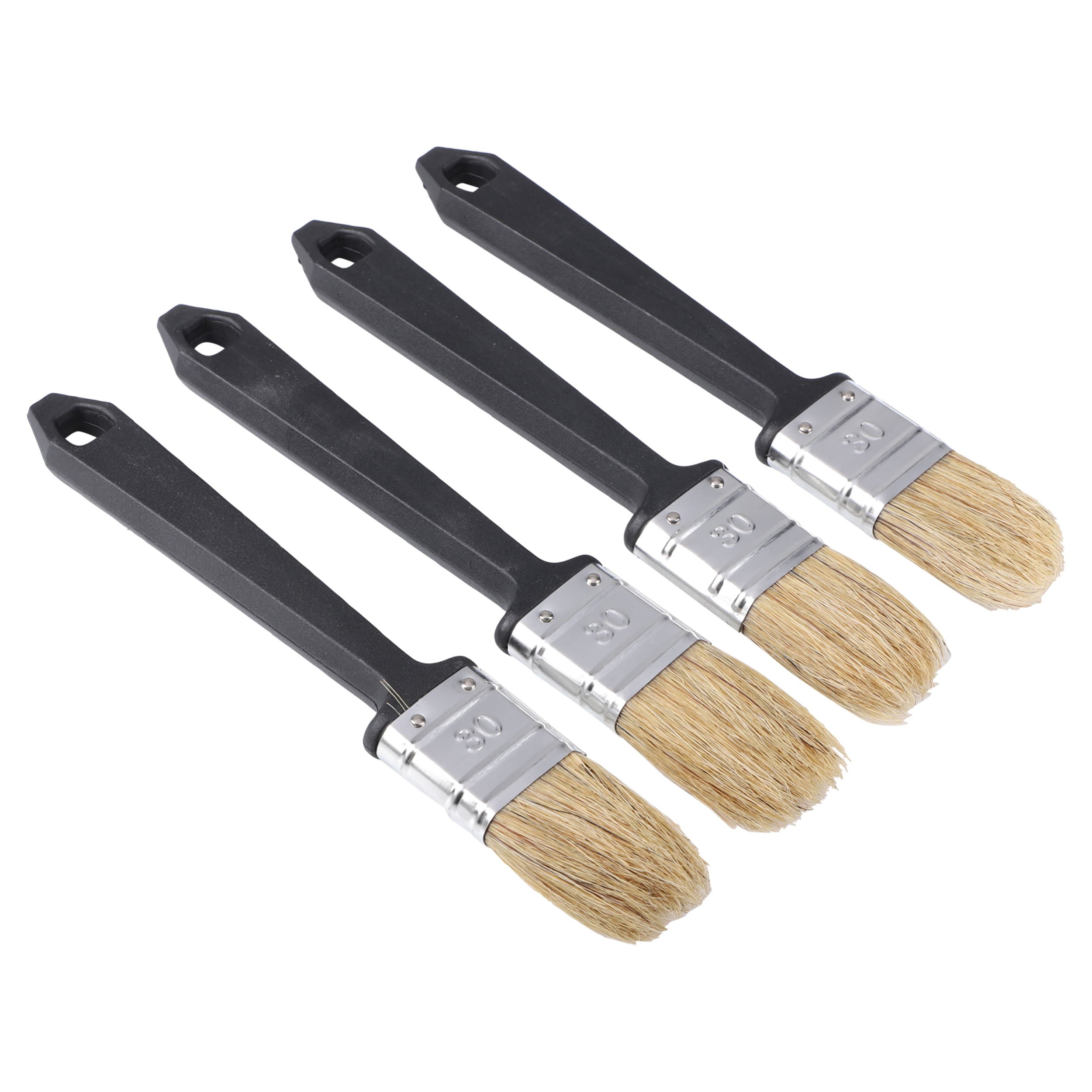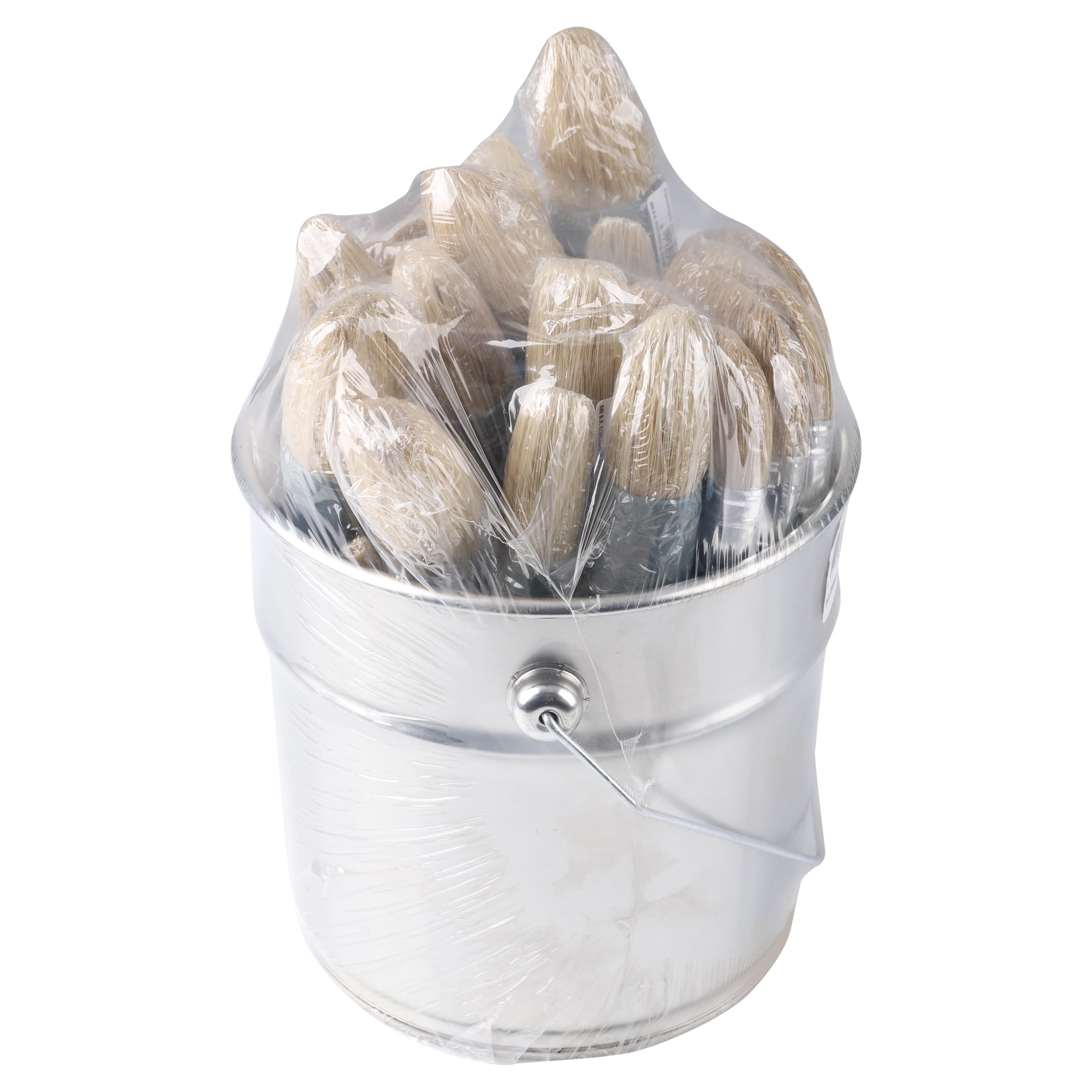Kwastenset bestaande uit: 12 ronde kwasten met kunststof steel 12 platte kwasten met kunststof steel 1 verzetblik.