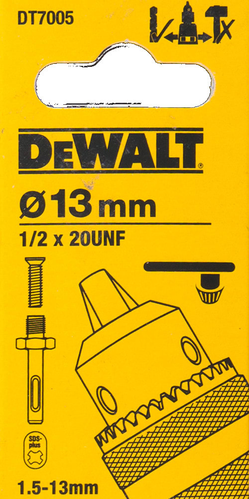 HomeElektrisch gereedschapAccessoires voor machinegereedschapAccessoires voor boormachinesDeWALT Boorkop DT7005-QZ 1,5-13mm 1/2"x20unf Met Adapter