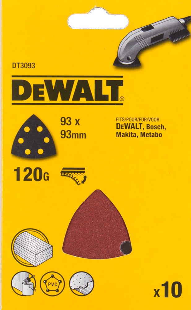 DeWALT Deltaschuurpapier DT3093QZ K120 93mm Driehoekig 10st