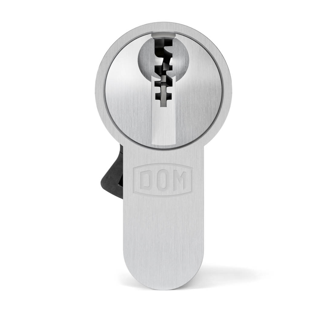 DOM Profielcilinder 333 Plura-T Dubbel 30/30mm Messing Vernikkeld Mat SKG2 Met Nood- en Gevarenfunctie Gelijksluitend 4st