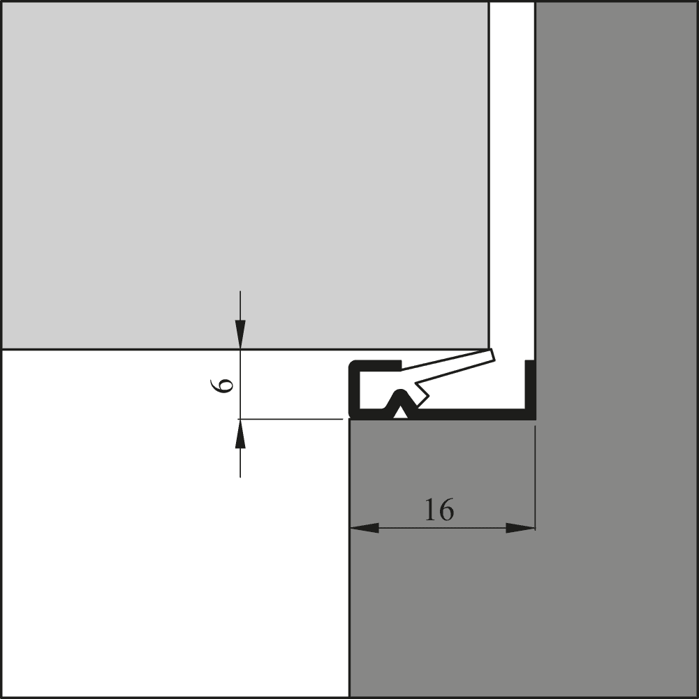 Aluminium inbouw tochtprofiel voor naar binnen- en buitendraaiende ramen en deuren. Plaatsing in de 6 mm afhangspeling tussen het kozijn en de deur.