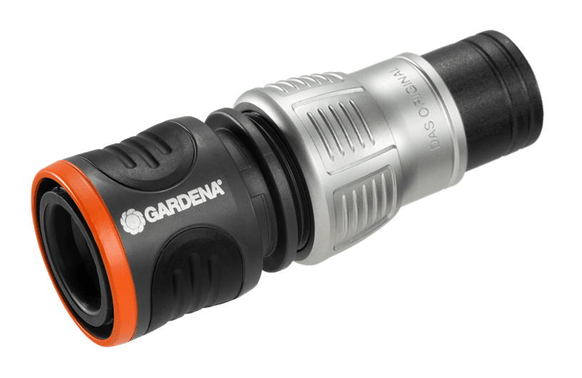 De GARDENA Premium Waterstop in hoogwaardig metaal-kunststof design zorgt voor een snelle, handige aansluiting en vervanging van een bewateringsproduct aan het eind van de tuinslang.