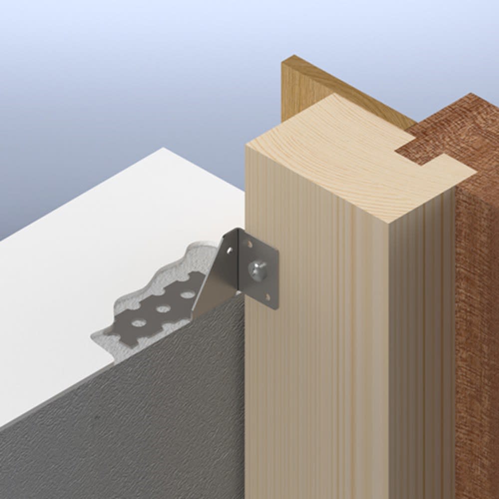 Lijmanker voor verlijming in het binnenspouwblad (lijm- of vellingblok) van lichte kozijnen die reeds vóór de verlijming geplaatst zijn. Lijmkozijnankers (in linkse en rechtse uitvoering) worden met gripankernagels aan het houten kozijn bevestigd.