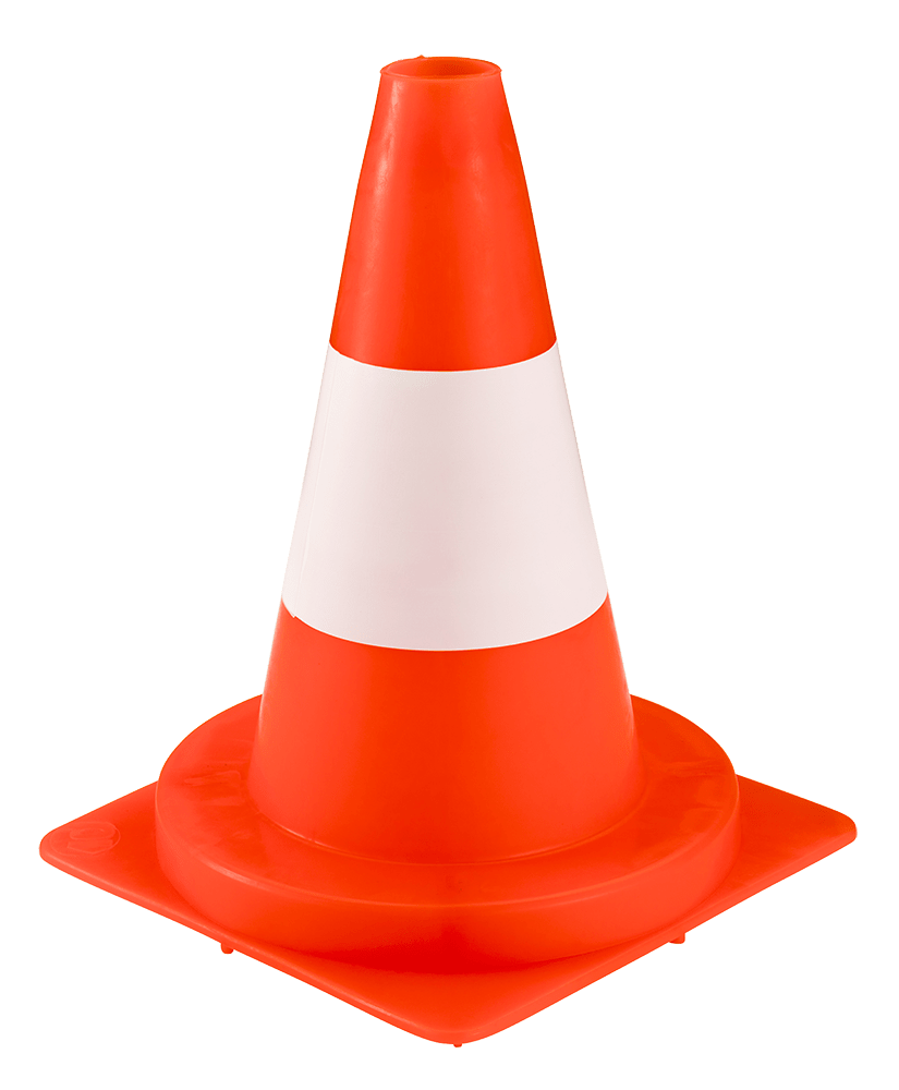 Foliefol verkeerskegels zijn standaard verkrijgbaar in 2 formaten en 2 kleuren.