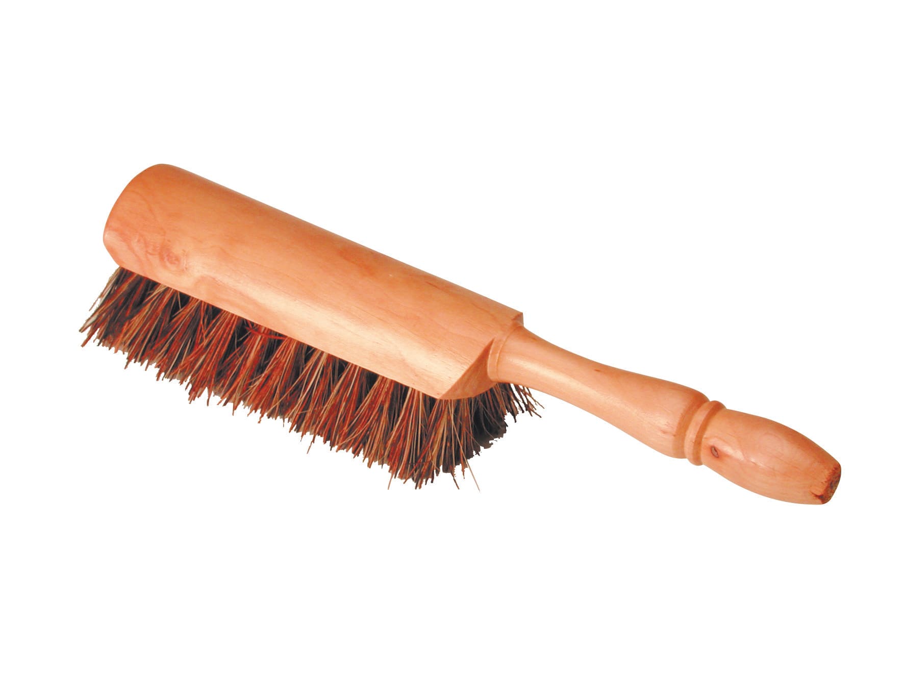Handveger van rond, blank gelakt, hout voorzien van natuurlijke union (bassine, fiber en cocos) vezels. Voor binnen- en buitengebruik.