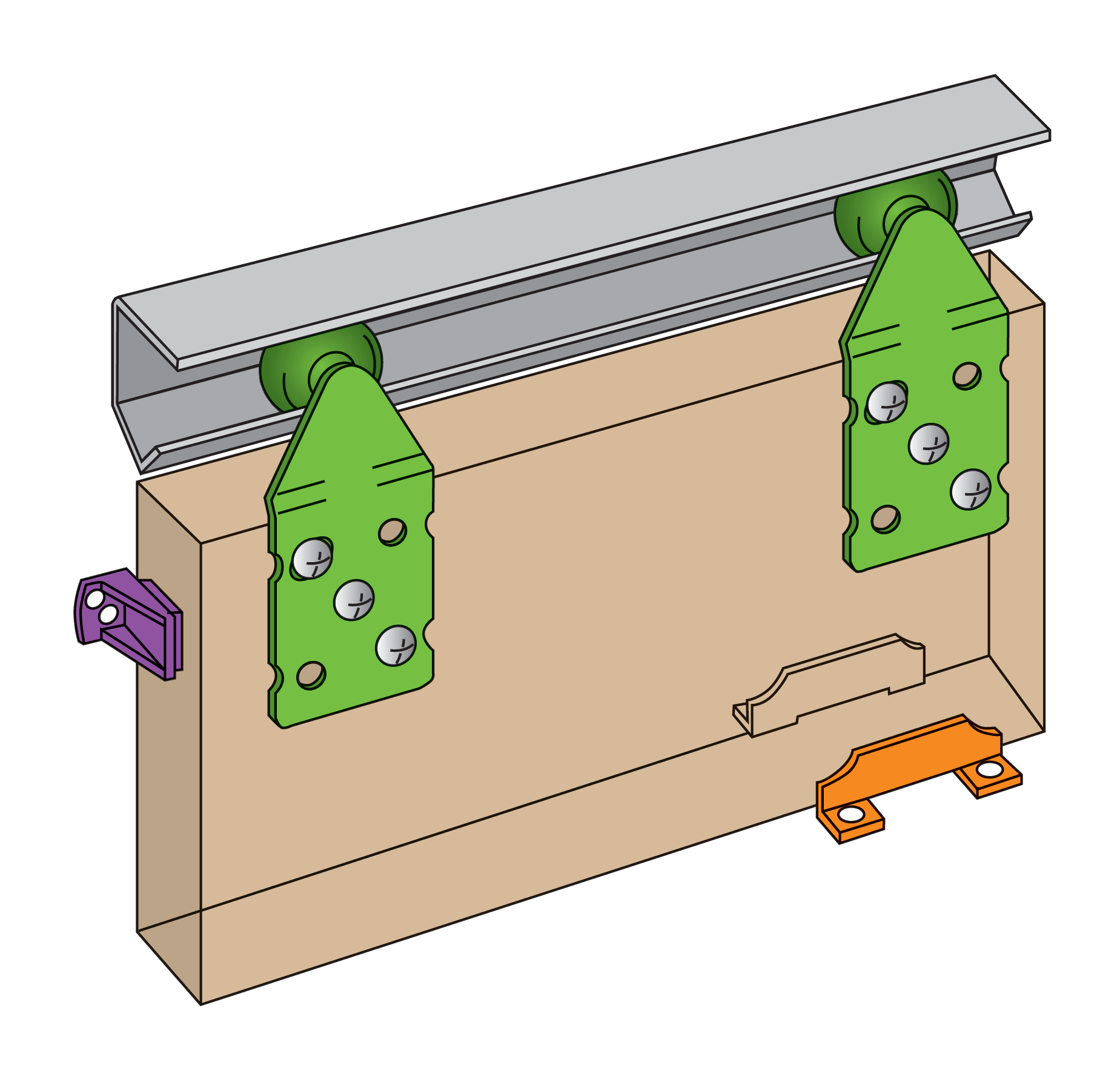 Single Top schuifdeurbeslag is ideaal voor toepassing als kast- en garderobedeur. Een voorgeboorde aluminium rail voor zowel plafond als wandmontage zorgt voor een soepele loop van de hangrollen. De deur kan na montage niet meer uit de rail lopen.