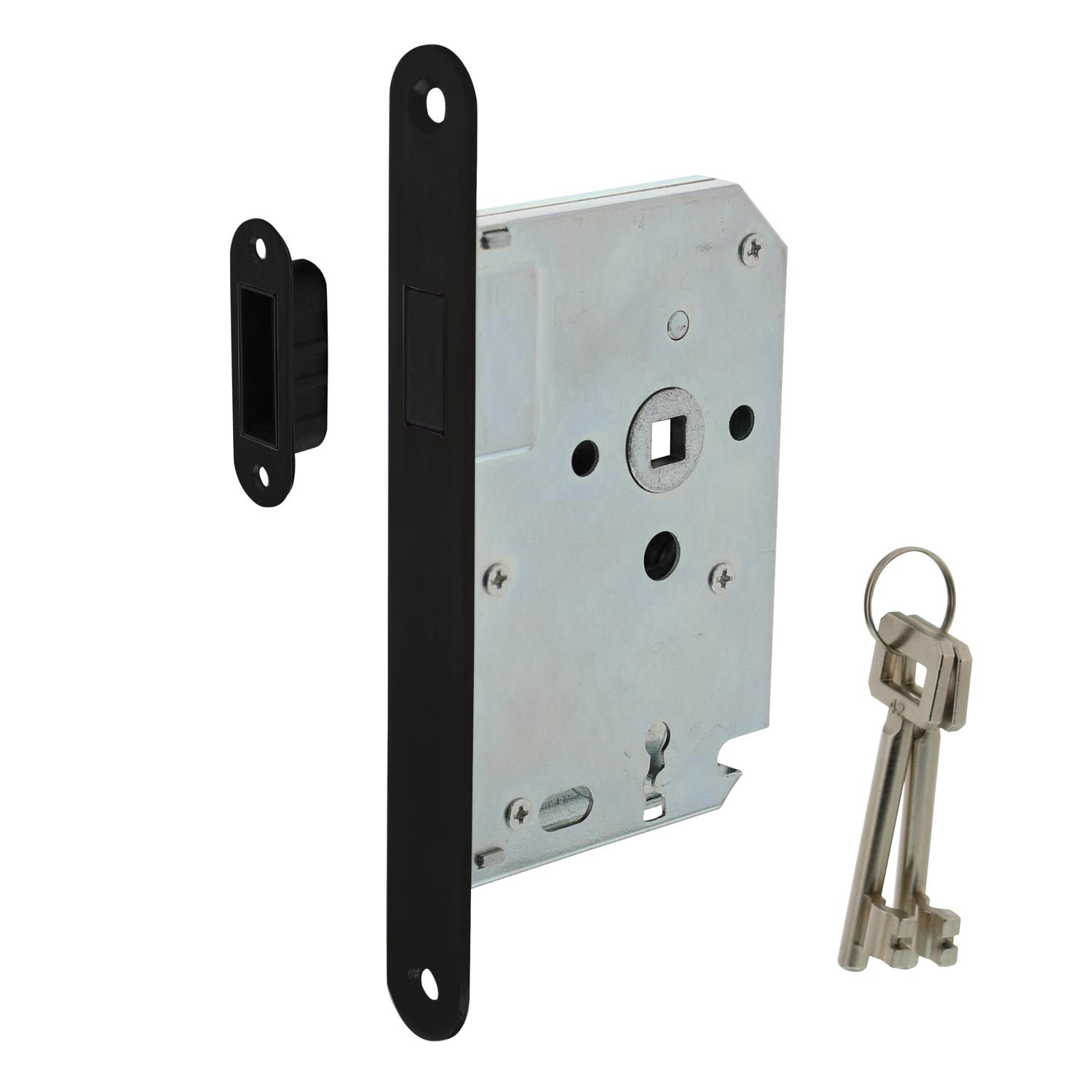 Intersteel Dag- En Nachtslot Magnetisch PC55 Doornmaat 50mm Voorplaat Afgerond Zwart Met Sluitplaat/Sluitkom En 2 Sleutels