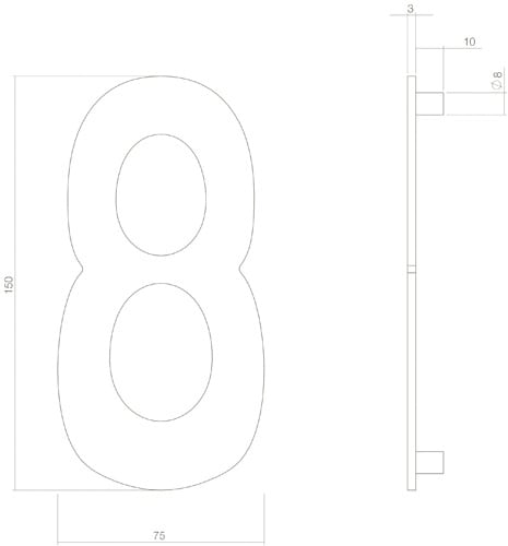 Intersteel Huisnummer 8 150x3mm RVS Zwart