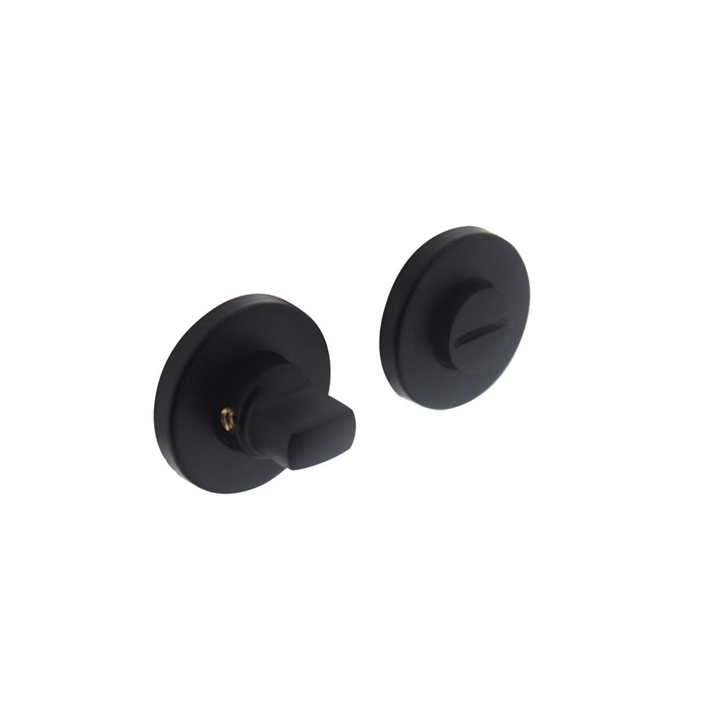 Een toilet-/badkamersluiting zorgt ervoor dat u een deur gemakkelijk kunt openen en afsluiten. Deze ronde toilet-/badkamersluiting met kunststof onderconstructie wordt geleverd in een mat zwarte uitvoering. Deze sluiting met blinde bevestiging wordt per paar geleverd inclusief bevestigingsmateriaal.
