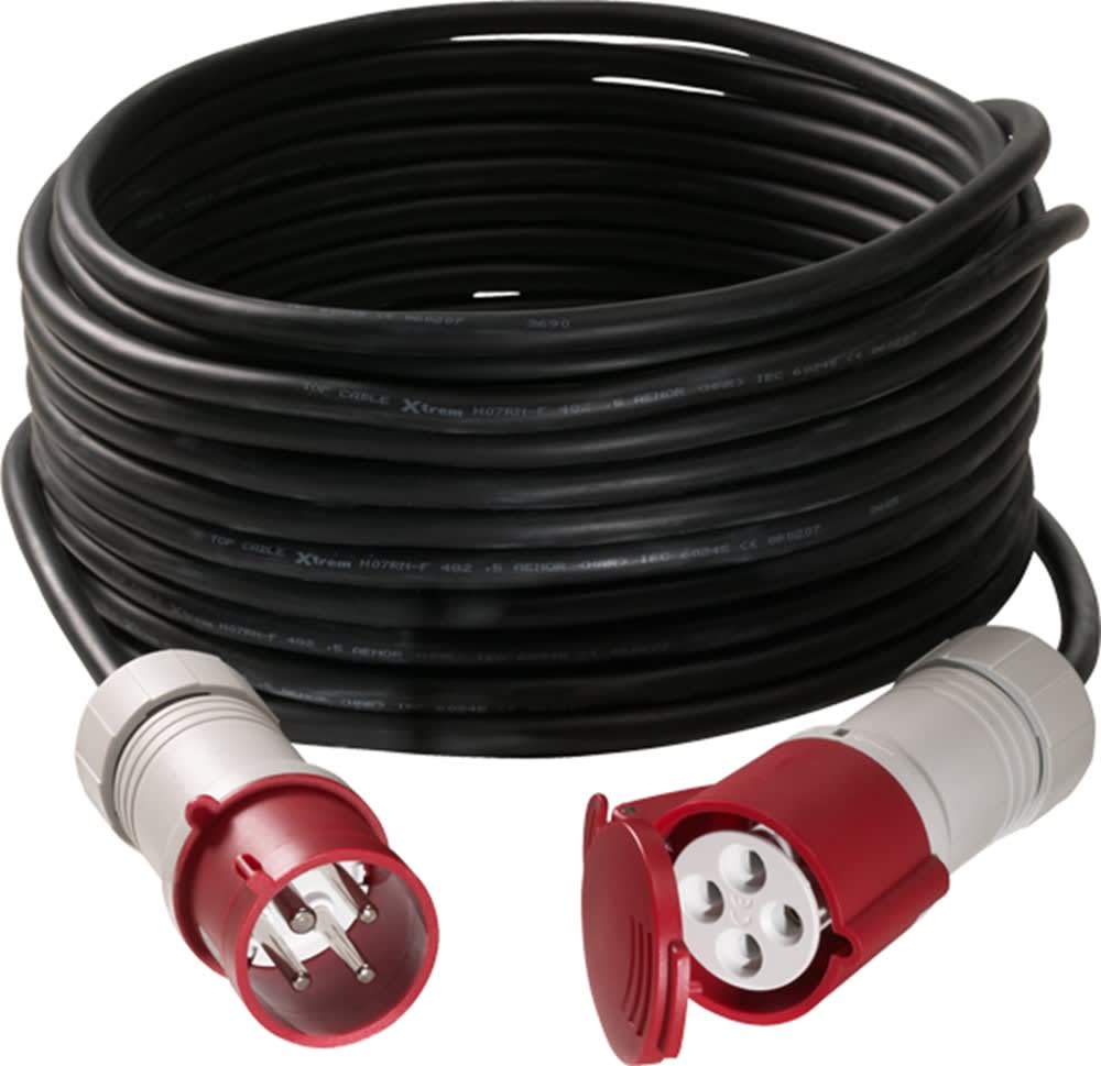Neopreen kabel H07 RN-F. Met CEE stekker en contrastekker. Geschikt voor een aansluitspanning van 230-400 V.