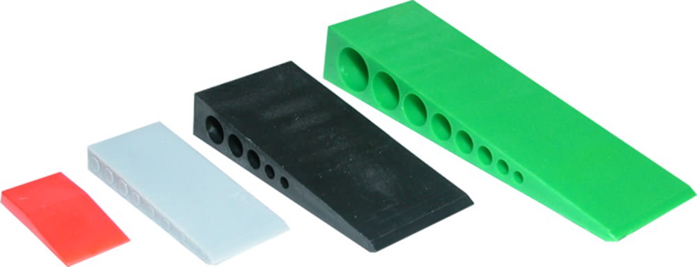 Polypropyleen met glasvezel versterkte wiggen voor stelwerk. Verpakt in krimpfolie.
