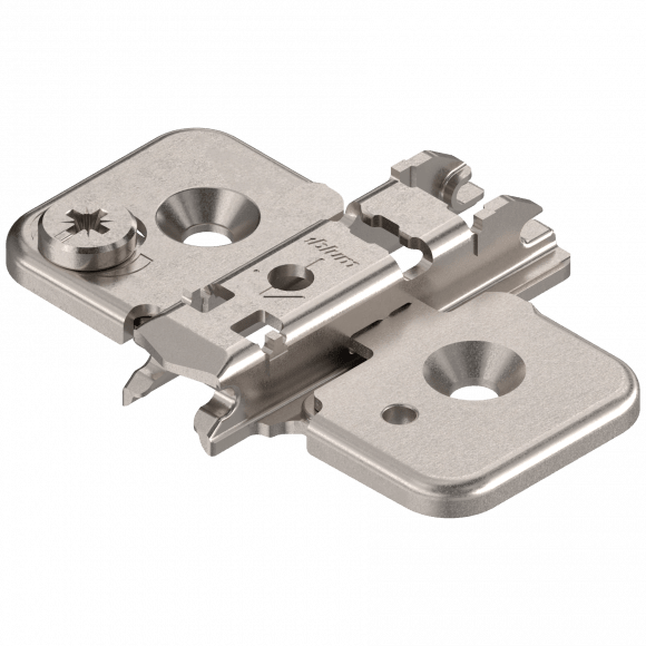 Kruismontageplaat, Excentrisch h-regelbaar. Staal vernikkeld. Houtschroef*0,0 mm verdikt.