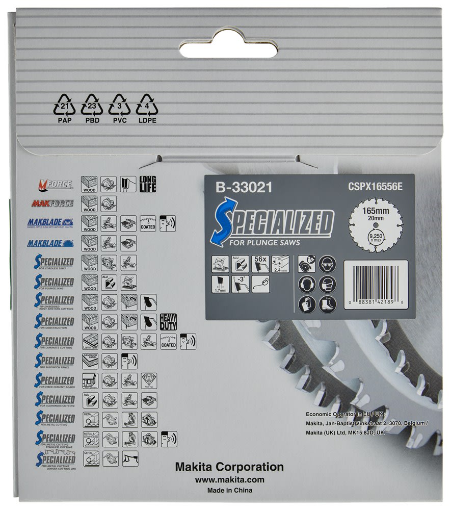 Makita heeft een uitgebreid assortiment cirkelzaagbladen voor de diverse machines. Kies een zaagblad voor het te zagen materiaal en passend op de te gebruiken machine; er zijn verschillende kwaliteiten, waarbij de Makita Efficut zaagbladen tot het top segment behoren. Voor meer informatie omtrent cirkelzaagbladen zie het Makita kenniscentrum: https://www.makita.nl/kenniscentrum/cirkelzaagbladen-en-de-technieken-erachter.html