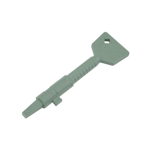 Universele sleutel voor gebruik tijdens de bouwperiode. Groen kunststof.