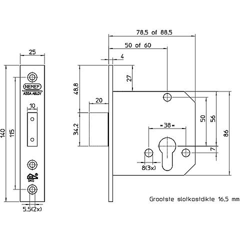 Nemef Veiligheidsbijzetslot 4228/27 50mm Rond SKG2