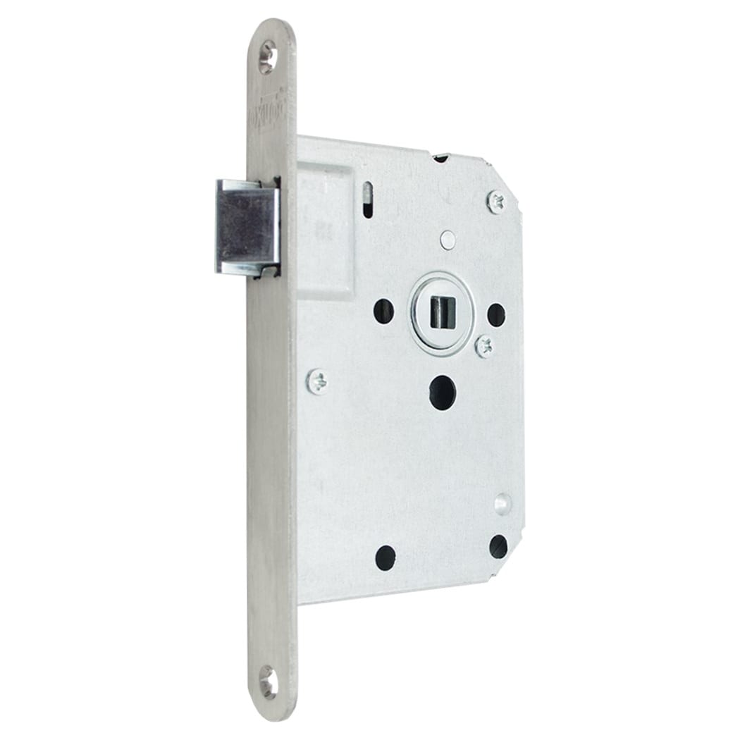 Standaard serie insteekslot, geschikt voor binnendeuren in woningbouw. Zamak dagschoot, met krukgat 8 mm. Dichte verzinkte slotkast 117x80x17 mm. Voorzien van afgeronde voorplaat 174x20x2,75 mm.