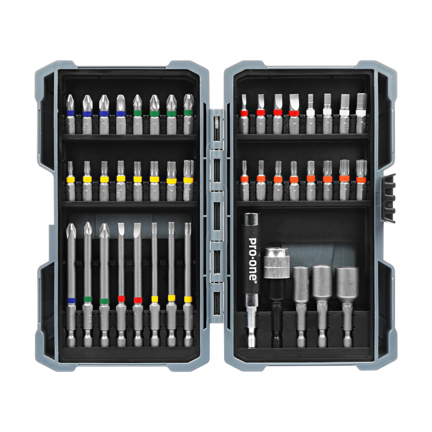 De ProOne bitset is een complete en handige verzameling bits voor allerlei schroefklussen. De bijgeleverde koffer houdt alles georganiseerd.