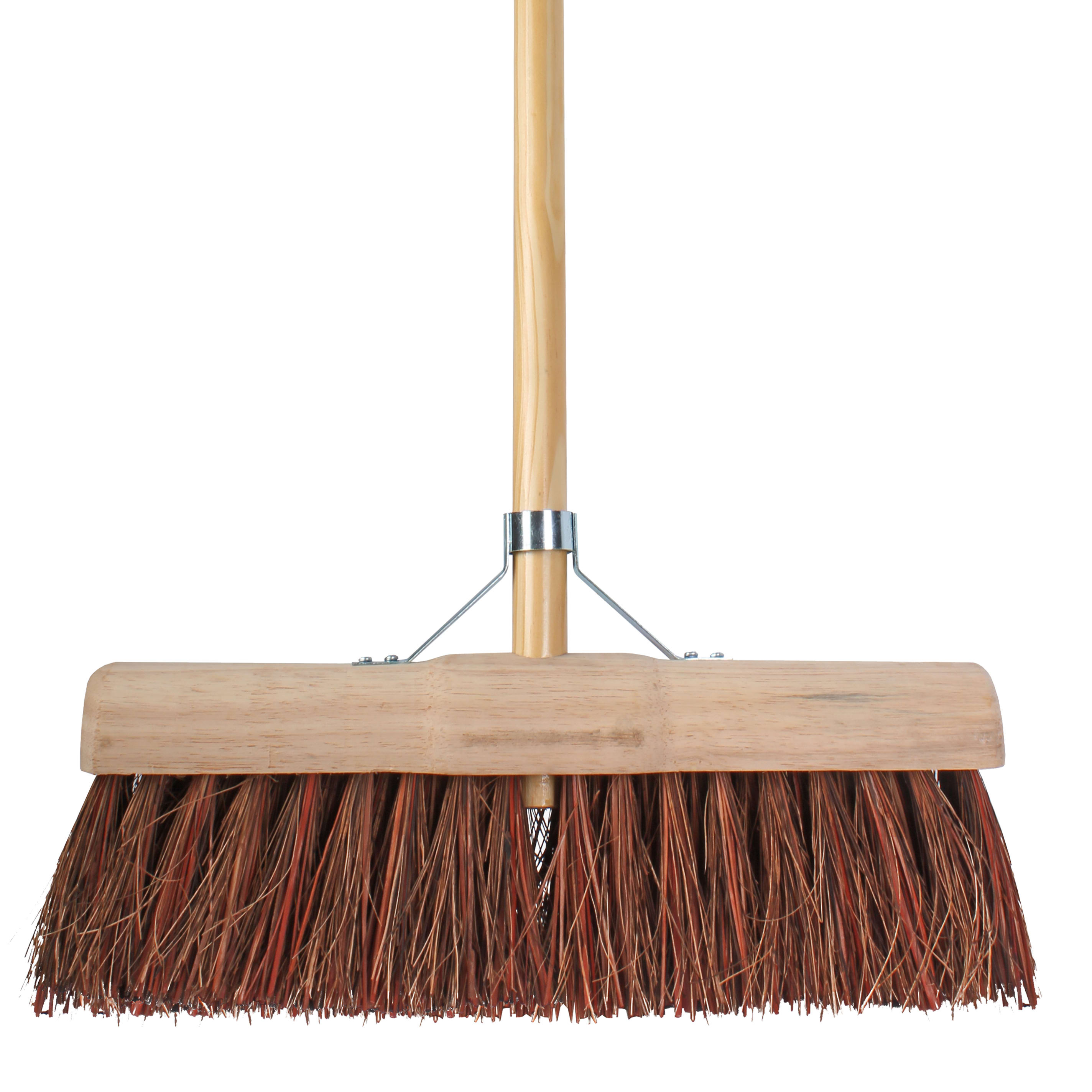 Deze bezem met natuurvezel haren is geschikt voor binnen en buiten. Deze bezem is ideaal op ruwe oppervlaktes doordat de haren verschillende diktes hebben. De breedte van de bezem is 45cm. De bezem is voorzien van een steel van 160cm. Ter ondersteuning is de steel met een verstevigingsbeugel aan de bezem gemonteerd. De keuze voor welke breedte u moet kiezen is afhankelijk van de oppervlakte die er geveegd moeten worden. Voor een beter veegresultaat en een langere levensduur adviseren wij u de bezem voor gebruik in een emmer met water te zetten.