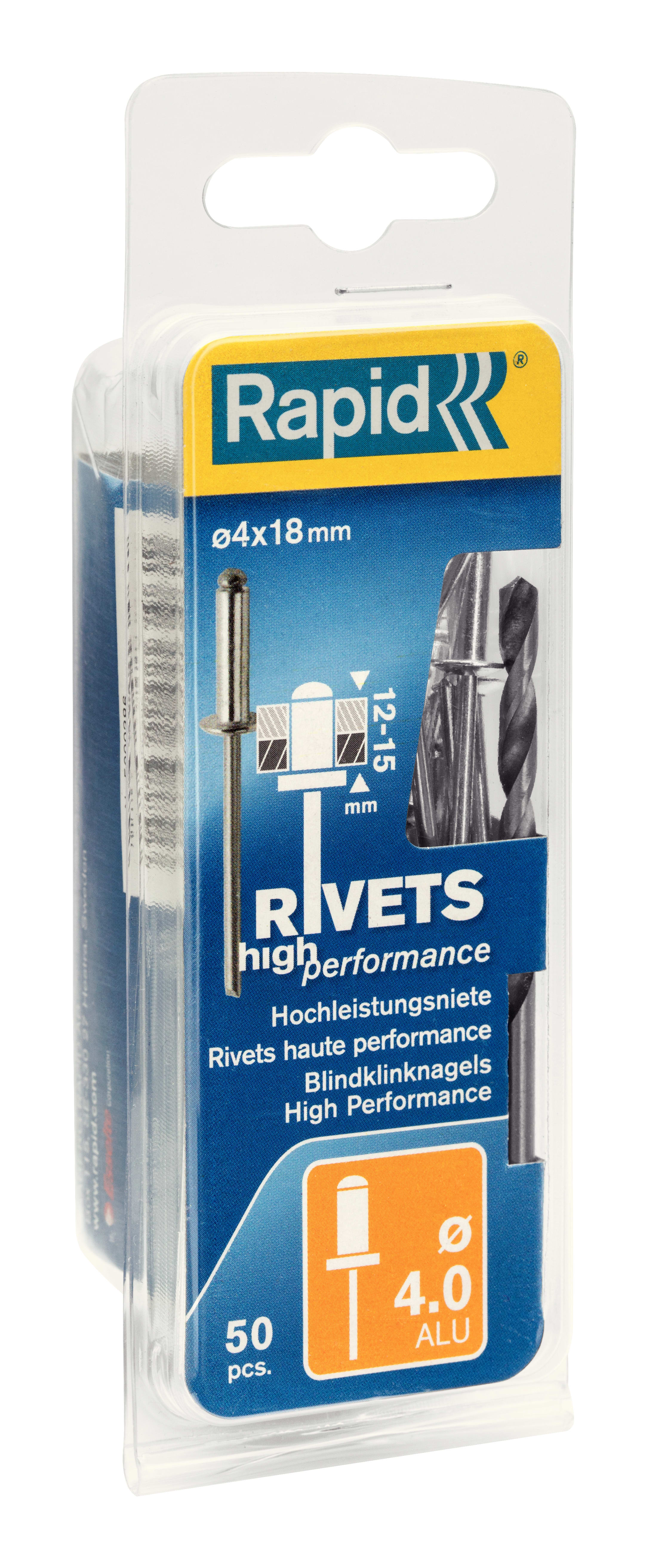 Rapid Blindklinknagel High Performance 4.0x18mm Aluminium Met Boor 50st