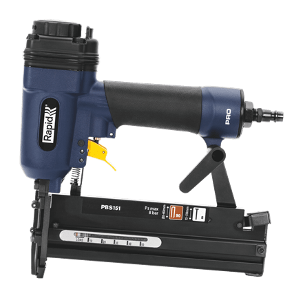 Kracht, precisie en veelzijdigheid, de PBS151 is een professionele duale pneumatische tacker voor smalrugnieten en brads. Ideaal voor snel werken met meubels, lambrisering, schrijnwerk en afwerking. Met 360° verstelbare luchtuitlaat die stof weghoudt van het werkoppervlak. Andere kenmerken zijn onder meer een snel laadsysteem en comfortabele greep welke vermoeidheid reduceert. Voor gebruik met smalrugnieten tot 40mm en brads tot 50mm. Geleverd in een handige beschermende opberg- en transportkoffer met daarin een snelstartgids die helpt de tacker correct te gebruiken en de juiste nieten/nagels te vinden wanneer deze bijgevuld moeten worden. Inclusief starterset van 200 25mm nieten en 200 50mm nagels.