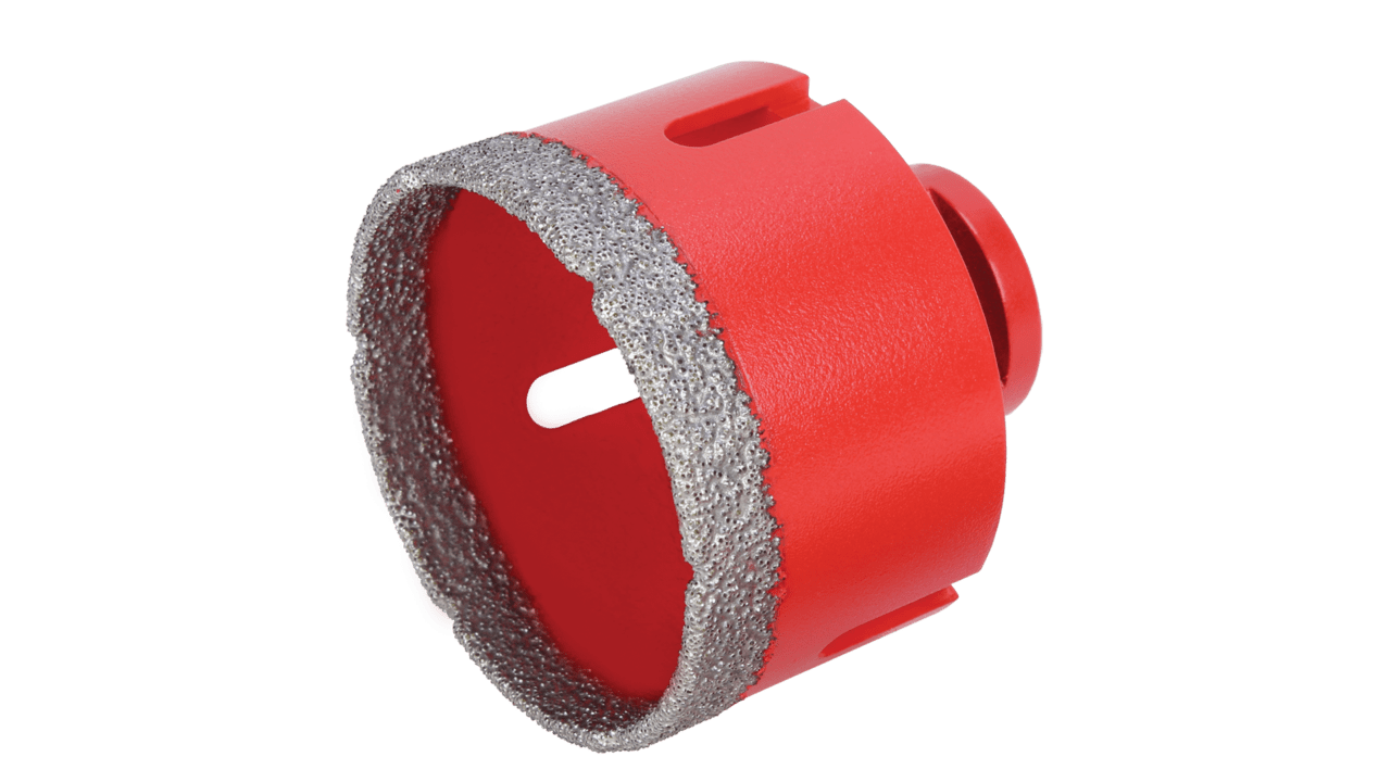 Voor het droog boren van keramische materialen, aardewerk en porselein. Alleen te gebruiken op een haakse slijper. Toerental van 10.000 en 14.000 RPM. Aansluiting M14. Verpakt in blister.