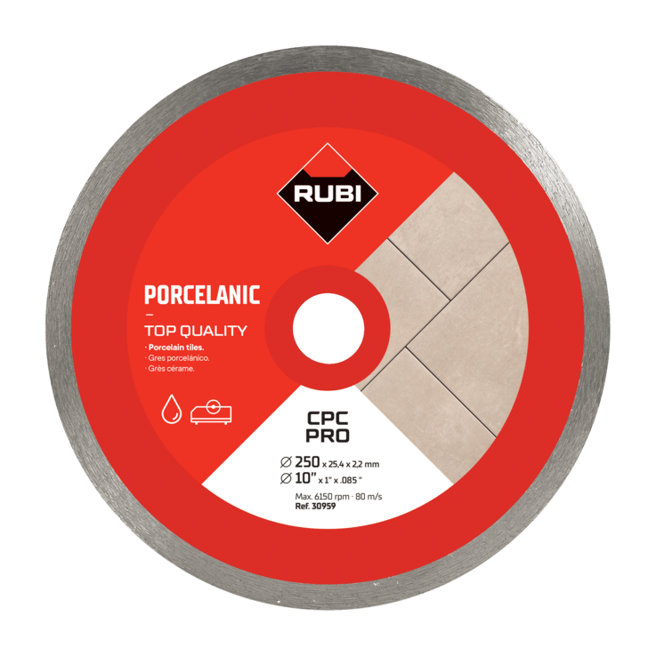 Het CPC zaagblad van RUBI is ideaal voor het recht zagen en verstek zagen van porseleinen tegels, met name voor tegels die extreem hard zijn tot een dikte van 25 mm.