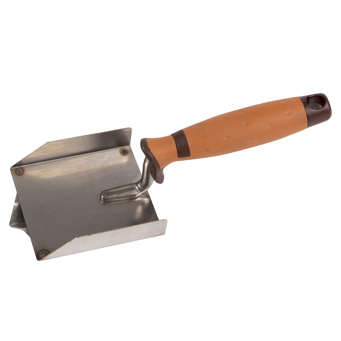 HomeHandgereedschapStucadoorsgereedschapTroffelsSuper Prof Eco Hoekschop 90x80x20mm Inwendig Opstaande Kanten RVS V-Groef Met SuperSoft Handgreep