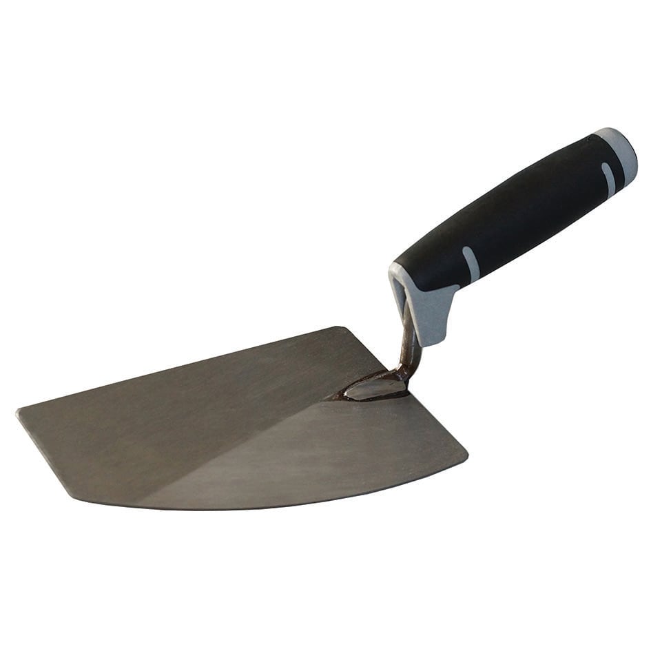 Deze rechtshandige Super Prof kuiptroffel heeft een ronding aan de zijkant die gelijk is aan de ronding van het merendeel van de bouwemmers of kuipen. Hierdoor kan een vakman de emmer of kuip tot op de bodem legen. De kanten zijn snel en simpel schoon te schrapen en men verliest geen tijd en materiaal meer.