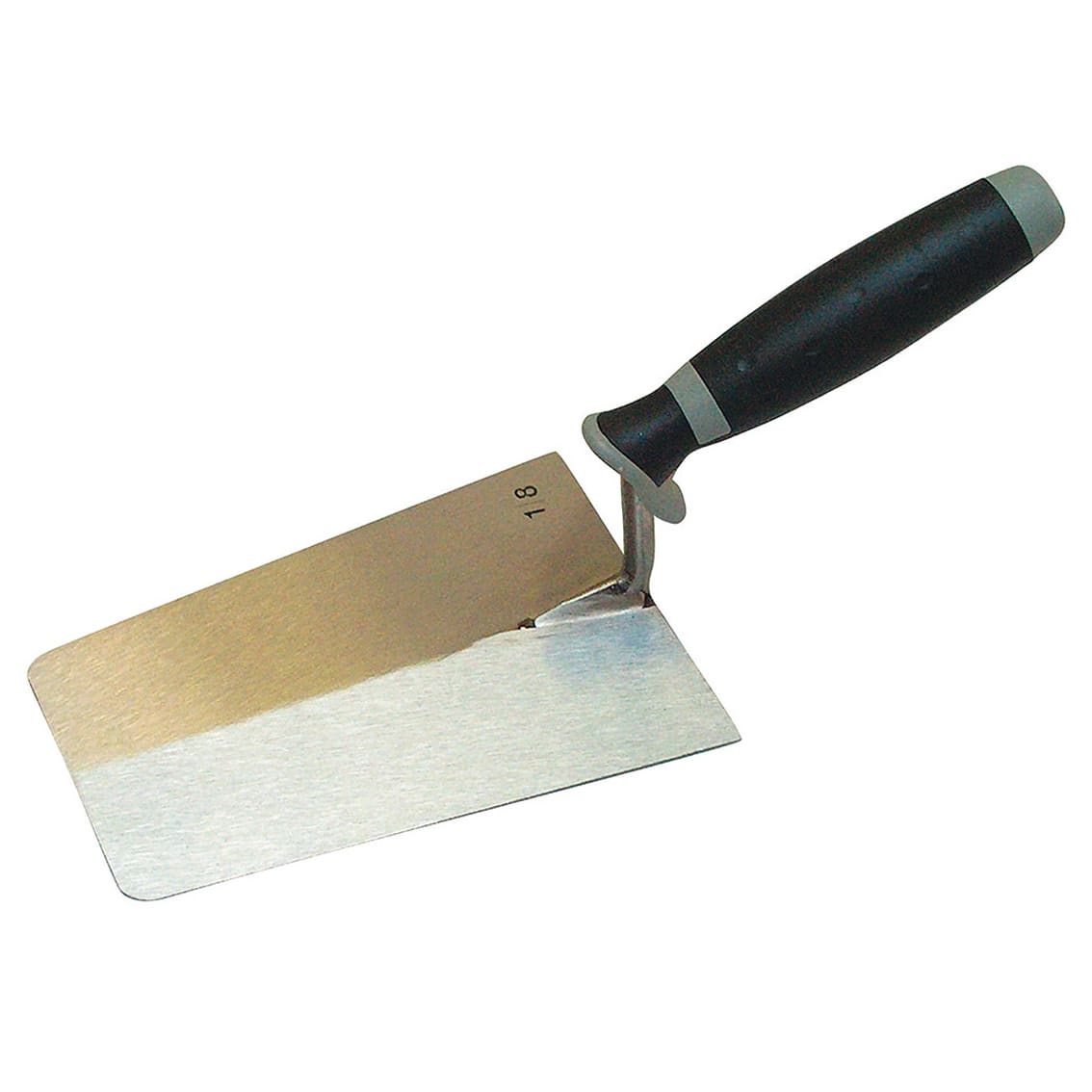 Stukadoorstroffel met afgeronde hoeken en soft handgreep voor betere grip en vingerbescherming. RVS en zeer sterke vol verlaste verbinding.