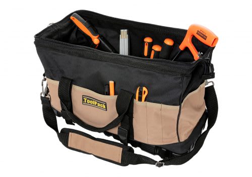 HomeWerkplaats en transportOpbergmaterialenGereedschapskoffers en -tassenToolpack Gereedschapstas 500x310x230mm Met Vakverdeling Zwart/Bruin