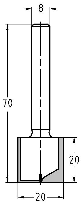 Trasco Groeffrees Hardmetaal 20x20/70mm Aansluiting 8mm